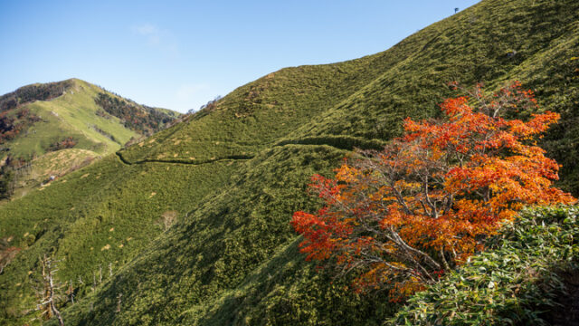 四国の山歩き次郎笈の一本楓 四国の山歩き 2025/10/23 晴れ 何年か前に見た写真次郎笈のトラバース道、緑一面の笹原に紅葉した楓の暖色が映えていた。機会があれば写真に収めたいと思っていた。時期は10月20日前後、天気が悪くて何日か伸ばした。桜の花みた... 2025.10.27四国の山歩き