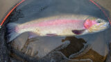 底への突っ込みを諦めたのかと思ったら中層を悠然と泳ぎだし、遠くへ行こうとする方向を変えるのが精一杯・・・・5分くらいのファイトだっただろうか?今シーズン初めて負けるかも知れないと思わせた力強いニジマスでした。