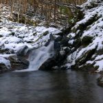 解禁日の後半(祝・愛媛渓流釣り解禁2019)、滝の横を高巻いていたら「バサッ」と音がした。振り返って見たら雪の上に竿が転がっていた。