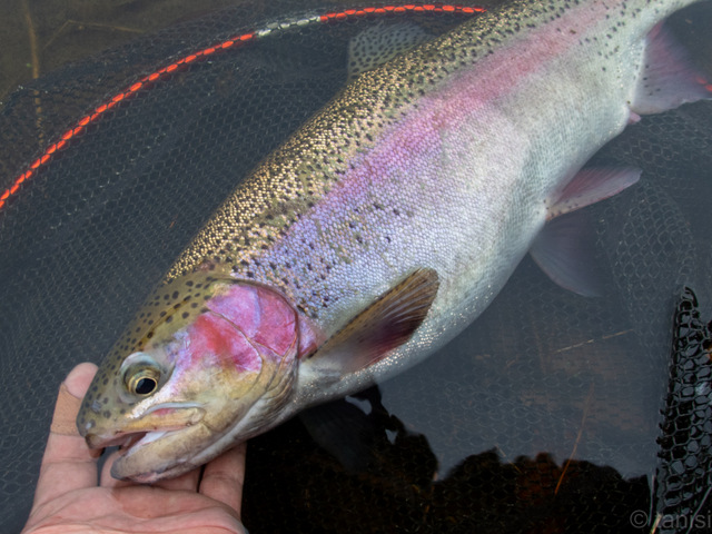 トルク勝負は野鯉の方が上だけど、突っ込みや走りを躱しながらのやりとりはニジマスの方が楽しい。
