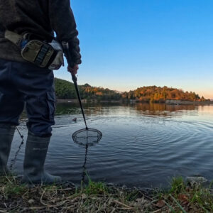 釣れたニジマスは、なるべく水際から離れないよう扱ってください。