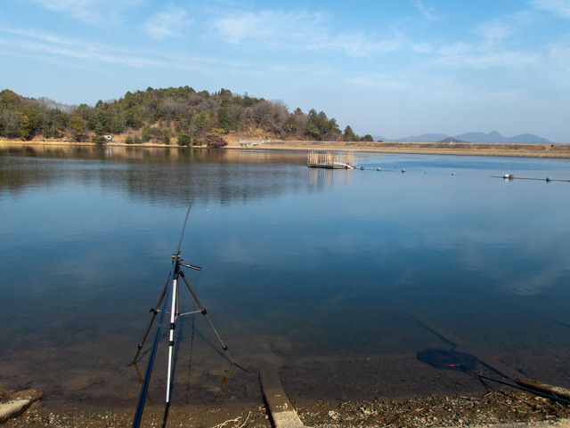 古い三脚を改造した竿受けを導入してから、アタリを待っている間軽く手を添えているだけなので腰への負担が小さくなり待ちの時間が長くても耐えられる。