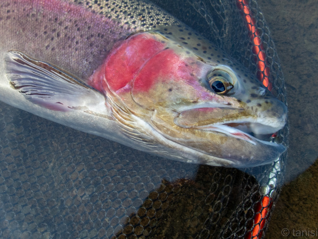 ニジマスは餌の近くに居て、この怪しそうな餌を喰っていいものか?と迷っているみたいだ。