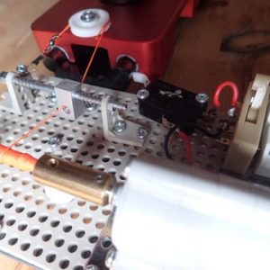 機工的には単純な構造、モーターで糸を巻き上げてドリーの台座を動かそうというものです。