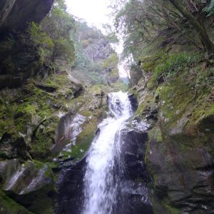 渓の傾斜が急に立ち上がり坂のような斜面を細くなった水が幾重にも分かれ流れようになった。
