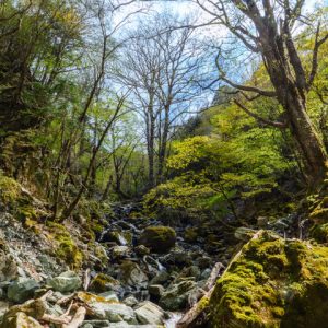 原生林の美しい源流には美しいアマゴが棲んでいる。