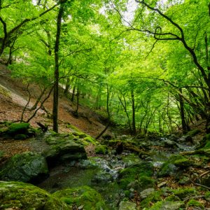 先週まで殺風景だった源流の風気が若葉色の明るい色彩に変わった。