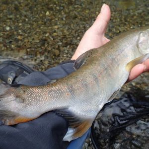 最終集落から電力の取水まで点検道が続いていた。取水上からが釣り場になるがそれからは上流には道がない。側面が崩れた連爆帯を越えると原生林に変わり素晴らしい渓相になる。ここまでくるとアマゴは良く釣れた。魚止めを確認したいが長い渓なので帰りのことを考えると3時前が限界で納竿しなくてはならず、いつも魚止めに届かない中途半端な釣りになってしまうことを残念に思っていた。