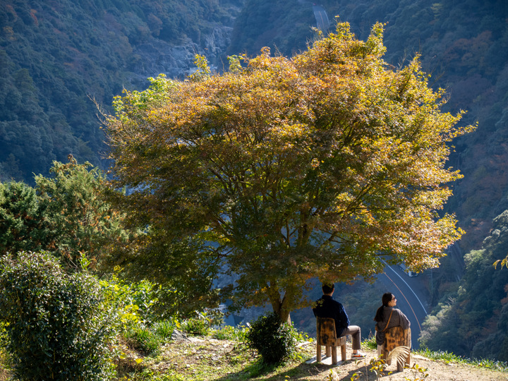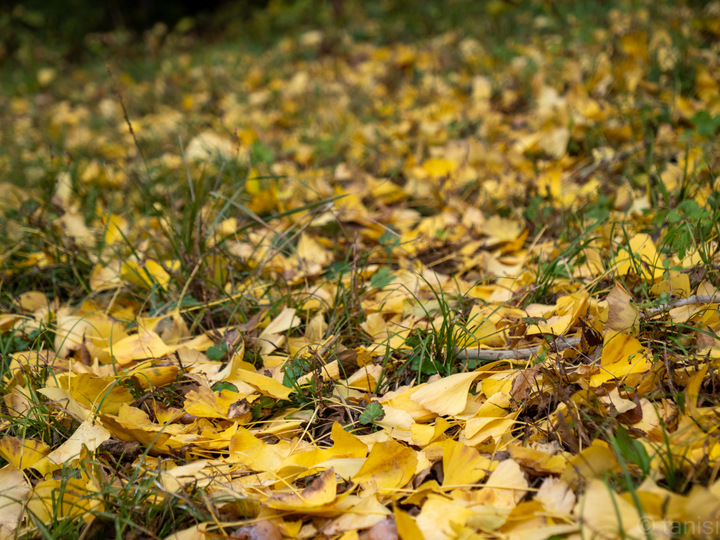 家の周囲にあるイチョウはまだ青いのに三好市のイチョウはピークを迎え散りはじめている。標高はそんなに変わりないのに気温の差が大きいのだろうか?