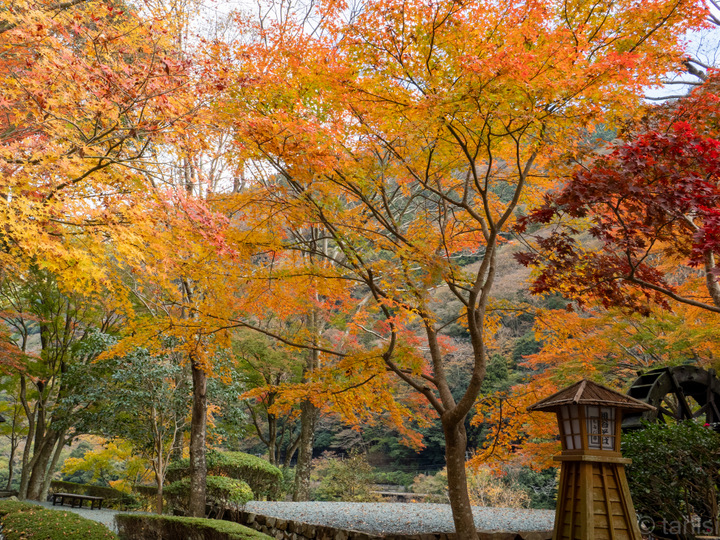 もみじ亭の名を付けているだけあって沢山の紅葉が植えられ賑やかだ。石畳に落ちた紅葉が印象的だったのだけれど臨時休業中でロープが張られていたので撮影する角度がなかった。