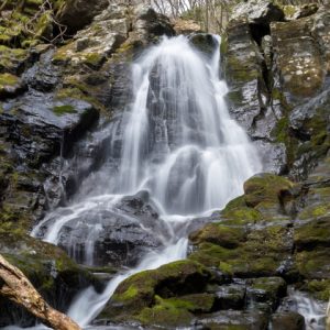 風が止まるのを待ってスローシャッターで水の流れにアクセントを加えた。
