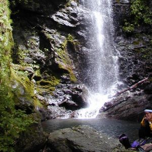 左が8m、右が3段10m 左の滝上に右の滝がある。鮮烈な水の流れに圧倒される。