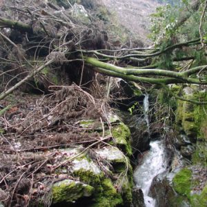 待ちくたびれて先に帰りますとケルンが積み重ねてあった。悪いことをしてしまったなぁ。この渓は入渓まで時間がかかることと入渓点と二又の中間点にある滝を高巻くのに苦労するくらいでそんなに問題はないのだが帰りの林道が・・・・・数箇所斜面が崩れていて、滑って落ちれば無事ではいられない。( 100m以上谷底へまっさかさまだ)