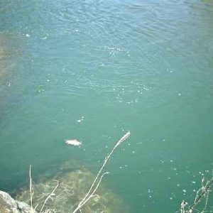 電力の取水から水量は十分に出てきたが、魚はポツリポツリといった状況、型も6寸前後であまり大きい魚はいないようだ。たまに岩魚が混じる。