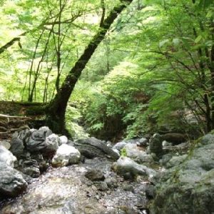 あめごさんと吉野川の合流点で待ち合わせ、私の車にあめごさんの荷物を積み込んで林道の終点に車を進めた。以前に来たとき は林道工事の途中だったのに集落を越えて源流の二又まで立派な道が続いていた。
