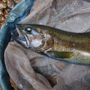 - 納竿点から150m稜線を登り200m下降して次の電力取水上流を釣る。