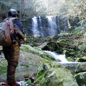 掟破りの谷下りでおいしい場所だけに竿を出すがアタリがない。