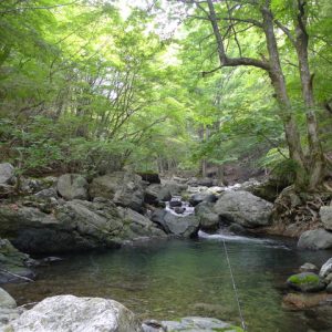 『愛媛の滝谷』→車止めから林道を30分歩いて二叉上から入渓、上流で林道に出合うまで高低差600mを釣り上がる。