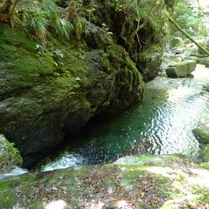 1時間半弱歩いただろうか?渓までジャスト100mの高低差、緩い尾根筋から下降した。