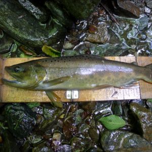 この水系は、目を奪われてしまうようなアマゴが釣れることがある。大きめのパーマークが8個、控えめの朱点が背中の黒点に重なっている、腹部の黒点の多さ、鰭の縁取りが薄い・・・・俺が思っている在来種の条件に重なる。