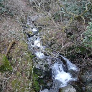 植林が逼った中を渓が細く流れる。普段の水量を考えればここより上流に、魚は居ないだろう。かつての魚止め付近まで魚は戻っているようだ。