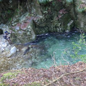 この渓は、支流を釣り上がり、尾根を跨いで最源流部に竿を出したことがあるが、まだメインストリートは釣ったことがない。この水系の専門家によるとメインストリートも、滝あり淵あり大小の落ち込みと瀬、変化に富んだお気に入りの渓らしい。 俺自身、入渓しなかったのは車止めには毎週のように車が止まっているから釣り荒れているイメージがあったからだ。彼の話によるとここ何年かはそうでもないらしい。