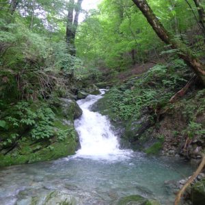 左支流を過ぎると傾斜が出てきて滝が連続するようになる。前回は、8寸クラスが入れ掛かりになった記憶、こんなに良い水量なのに6寸止まりだった。