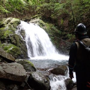 緩い流れをイメージしていたが大場所が次々と現れる。先日の雨で水量が多くて渡渉する場所がないのでシビアな遡行になります。