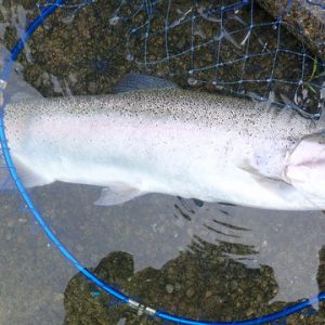 水量は平水の倍以上、いきなり3尾掛かる。この上ない水量、ささ濁り・・・・釣れすぎたらどうしようと思ったのは最初だけだった。