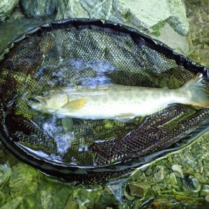 15年前と同じ容姿を持った尺上、在来種の可能性を広げるには十分の材料が揃っていた。毎年、この支流に入っているがこの手のアマゴは見たことはない。大水が出れば本流から上ることも考えられるが岩魚のように積極的に上流を目指す魚ではない。