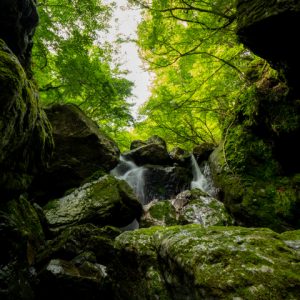 いつもは左から高巻くので気が付かなかったが正面突破したら光芒が岩の苔に差し込んでいるカッコイイ滝が待っていた。