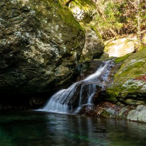 水流に削られた滑らかな傾斜を水が優雅に滑り落ちる姿は美しい。
