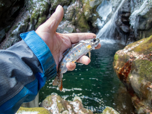 小さなアタリに合わせると竿を持つ手にアマゴがくねくねする懐かしい感覚に、今年も渓流シーズンが始まったことを実感できた。
