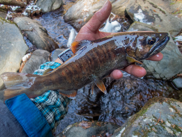 尺顔をしたカッコイイ雄、この渓の特徴であるオレンジの大きな朱点とサビの色合いが精悍さにハクを付けていた。