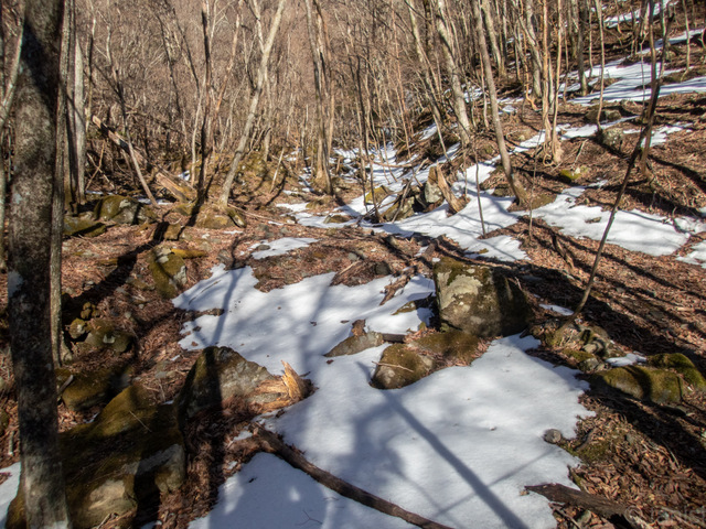 流石にこの標高まで登ってくれば雪が残っているが、硬さはないので暖かい日が2、3日続けば溶けて無くなってしまうだろう。