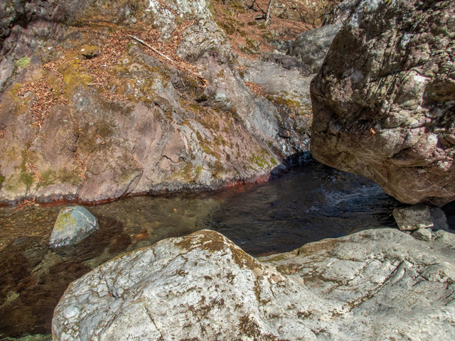 大岩ゴロゴロの渓相、短足のオイラはストロークが足りず手足を駆使しながら反動を付け越えなければならないので体力が削られる。