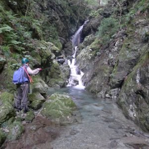 滝の落ち込み奥の狭壺がちっと深そうだ5寸より大きいのが出そうだと思い仕掛けを入れた。手元に違和感・・・・竿先に滝のしずくがかかりアタリなのか何なのかわからない・・・・とりあえず竿を立ててみると竿が曲がる。