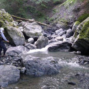 3m程登ってみると淵なし、壺なし・・・・深いところで15cmくらいか?小さいのが走ったので取り敢えず竿を出すと5寸クラスが1匹、2匹、3匹も釣れたぞとJUNNさんにみせると、まぁそんなモンだろうと笑って応えてくれた。