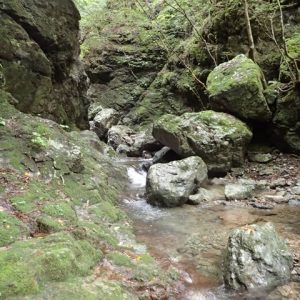 渓流釣り遡行記2015 2015/9/18 晴れ 吉野川水系 祖谷川 昔は普通車でも楽に車止めまで辿り着くことができたが荒れた林道になってしまった。剥き出しになり尖った岩を避けながらゆっくり車止め近くまで辿り着くと路肩が崩れて通行止めに...