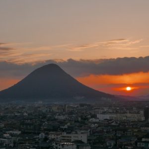 星空撮影の埋め合わせに瓶ヶ森から石鎚山に沈む夕陽を撮影することにした。