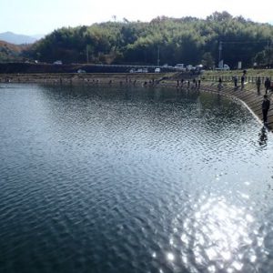 もっこく池は週末の釣り大会用にニジマス放流が昼から行われるので立ち入り禁止になっていた。立ち入り禁止の番人の方に許可をもらい池の堤を通行させてもらった。