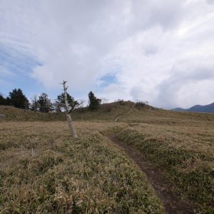 植林の中の登山道、大きなカーブの葛籠折れになっているが登りっぱなしなので結構キツい、4日前の丸笹山がオフトレはじめだった。何となく今シーズンも山歩きができそうな自信を感じていたが本格的な登りを歩いてみると自信は虚像で山歩きの脚力や体力が足りていない・・・・まぁ先は長いので休憩を挟みながらゆっくり慣らして行こうと決めた。
