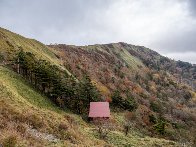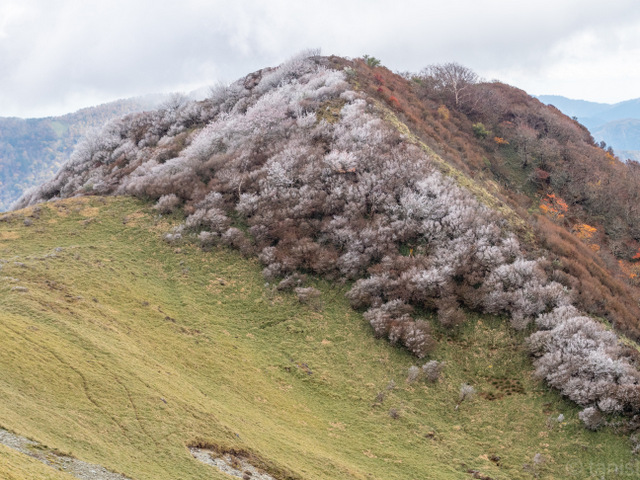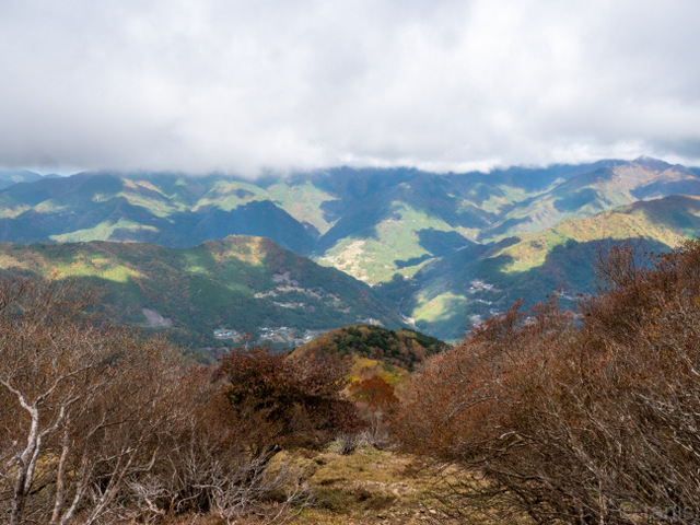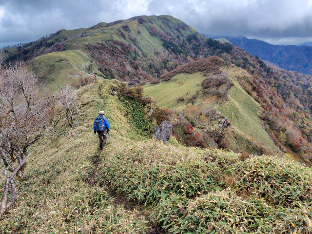 ここで計画変更、まだ少し強めの風が吹いているので天狗塚のピークハントは諦め、西熊山北稜線の紅葉に重点を置くことにした。