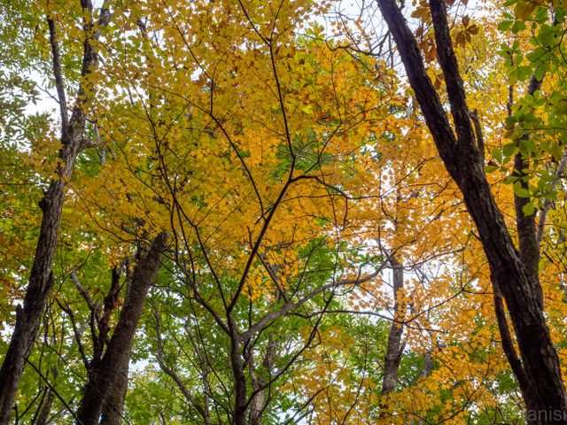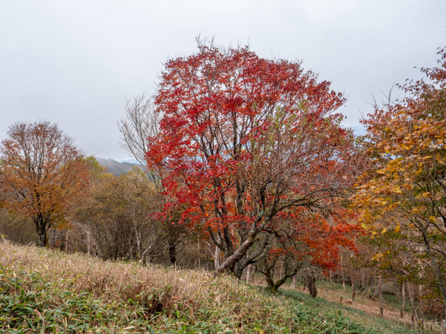 樹木が疎らになる場所にも紅葉が残っていた。3年前に来たときは1週間ほど早かったのに枯れ木だったのになぁ。やはり、今年の紅葉前線下降は1週間以上遅れている。