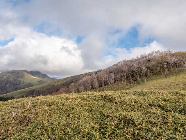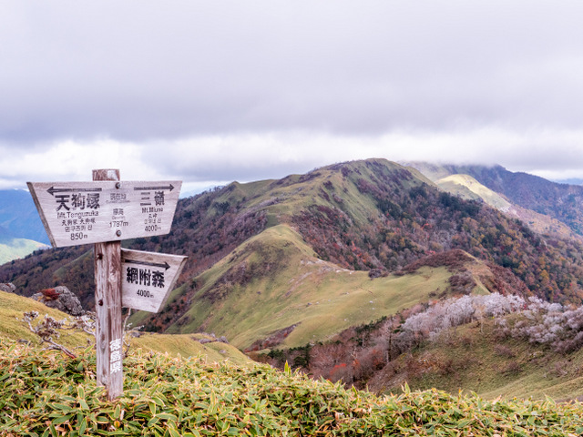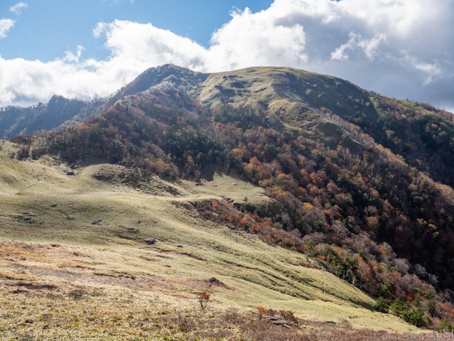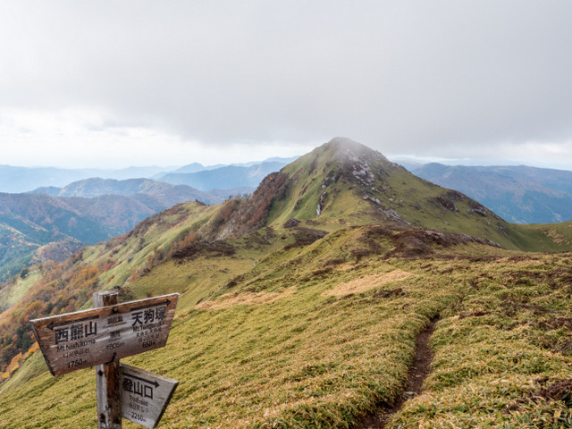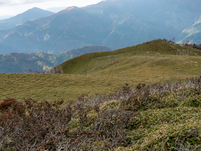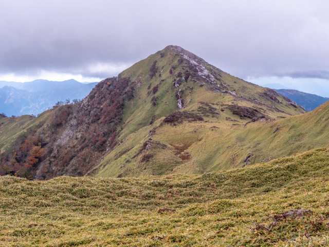 三嶺から見た西熊山はこんもりとした丘に過ぎないけど、天狗峠から見た西熊山はゆったりとカーブしながら標高を上げていく様が美しく、奥に三嶺を配しているところも素晴らしい。