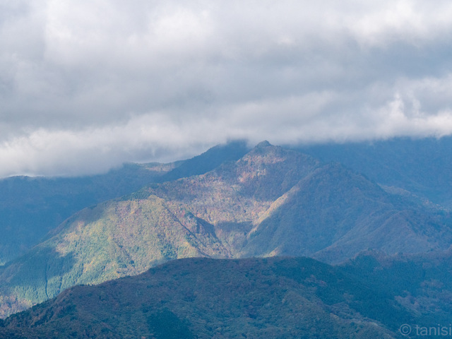 風裏の上に立てば天狗塚が顔を出し、下りに使う西熊山北尾根の紅葉が現れた。