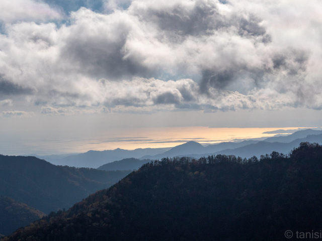 しばらくすると祖谷の下界が晴れ渡り、祖谷山系の稜線が見えるようになった。西方面の山々もクリアーに見渡せた。