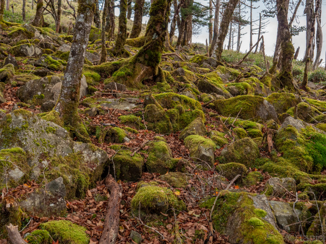ゴロゴロ岩にビッシリ苔が張り付いたゾーン