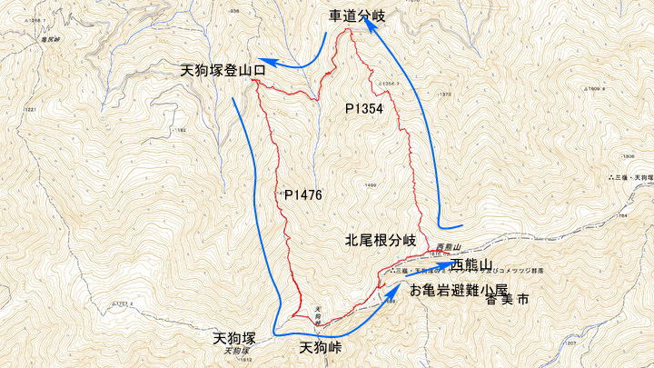 亀尻峠-牛の背-天狗塚-西熊山ピストン