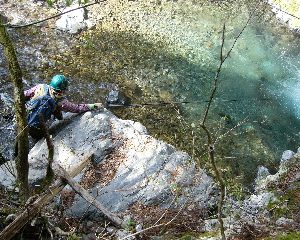 今度は左の縁を慎重に登攀完了、左の脇腹と肩を強く打ったようだがこれからの遡行に影響はなさそうだ。